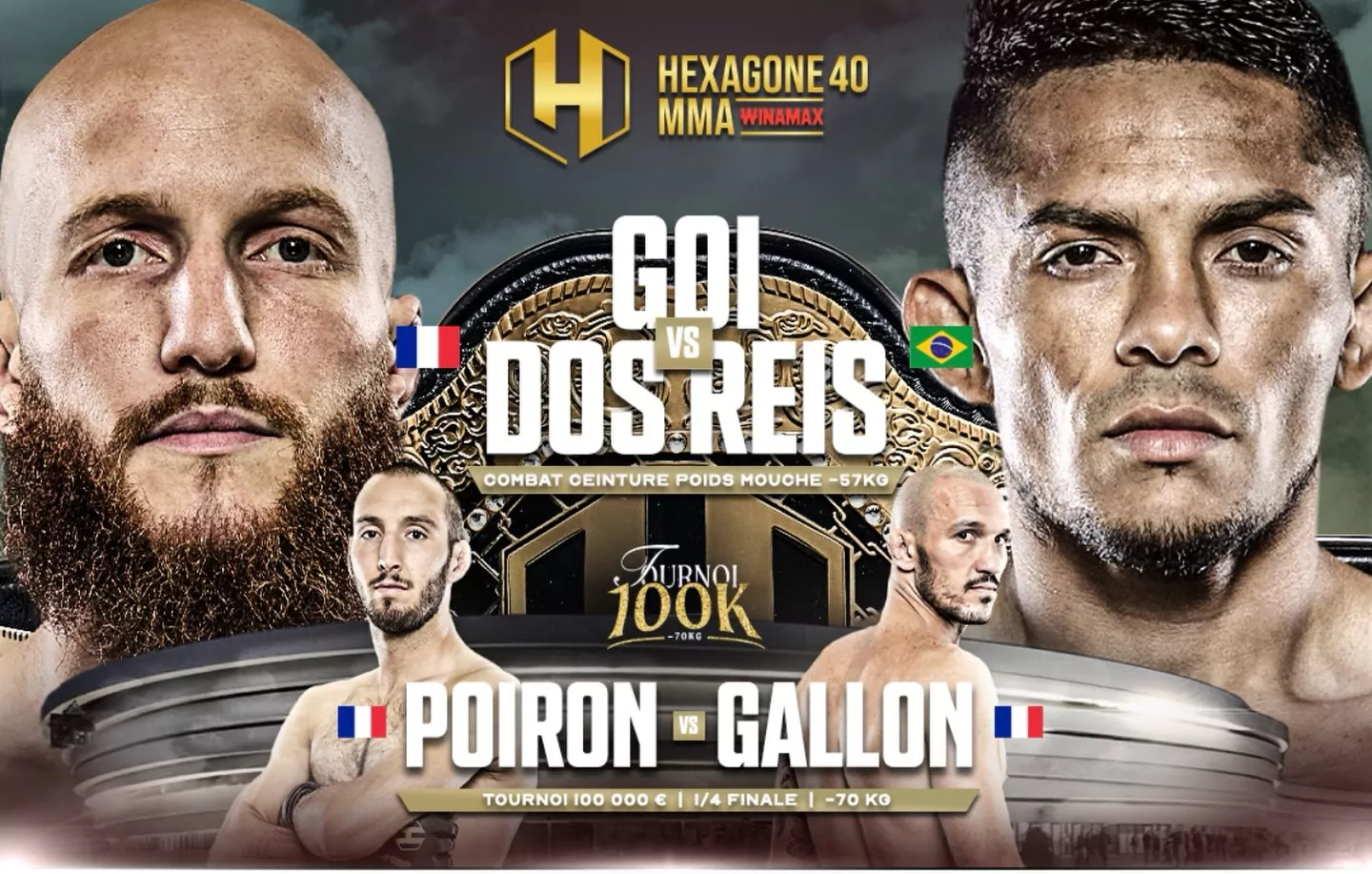 Invaincu au sein de l’organisation, Goi incarne la nouvelle vague du MMA tricolore : technique, explosif et ambitieux. Face à lui, Dos Reis apporte l’expérience et la dureté acquises sur les circuits internationaux. Le Brésilien représente sans doute le défi le plus relevé de la carrière du Français. Un choc de styles et de générations, avec une ceinture mondiale à la clé.