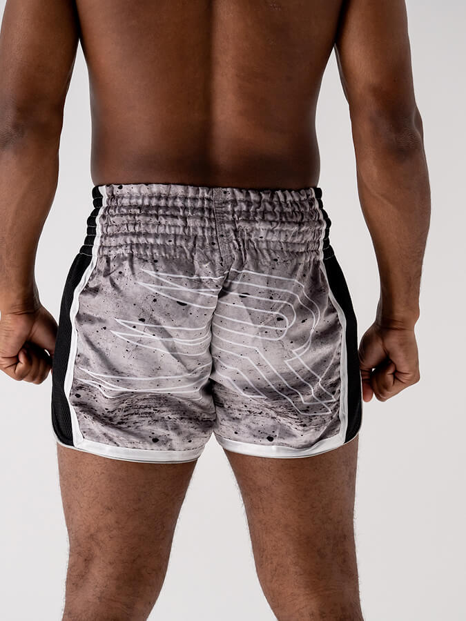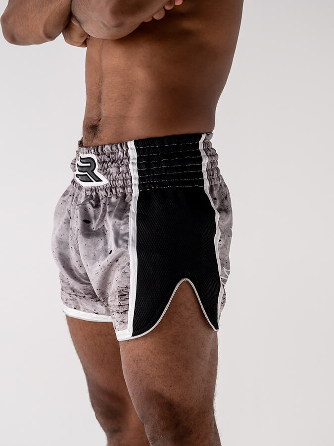 Inspiré des shorts traditionnels, sa coupe ample et ses fentes latérales généreuses libèrent les high kicks, middle, low kicks et les genoux sans aucune entrave.