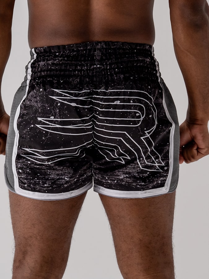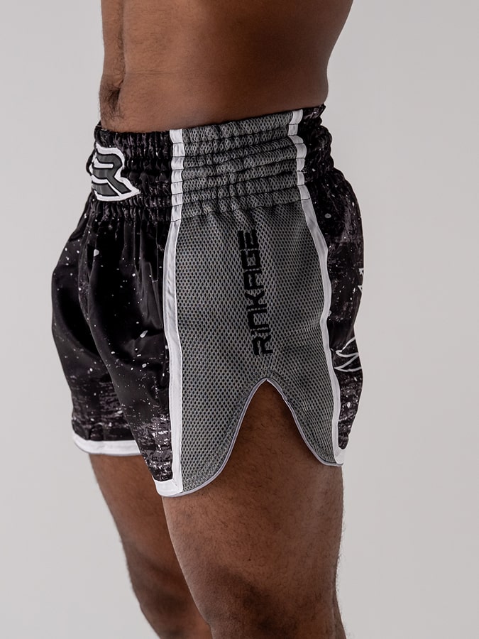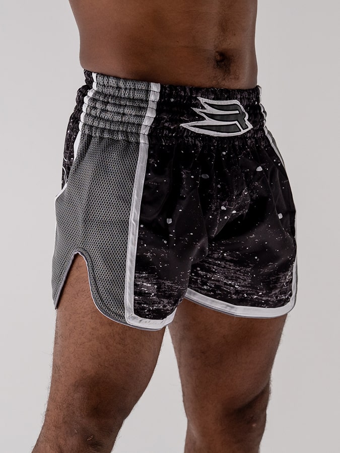 Inspiré des shorts traditionnels, sa coupe ample et ses fentes latérales généreuses libèrent les high kicks, middle, low kicks et les genoux sans aucune entrave.