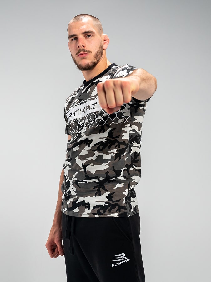 Inspiré de l’octogone et conçu pour le quotidien comme l’entraînement, le T-shirt Rinkage FENCE en coton stretch allie sobriété et confort.